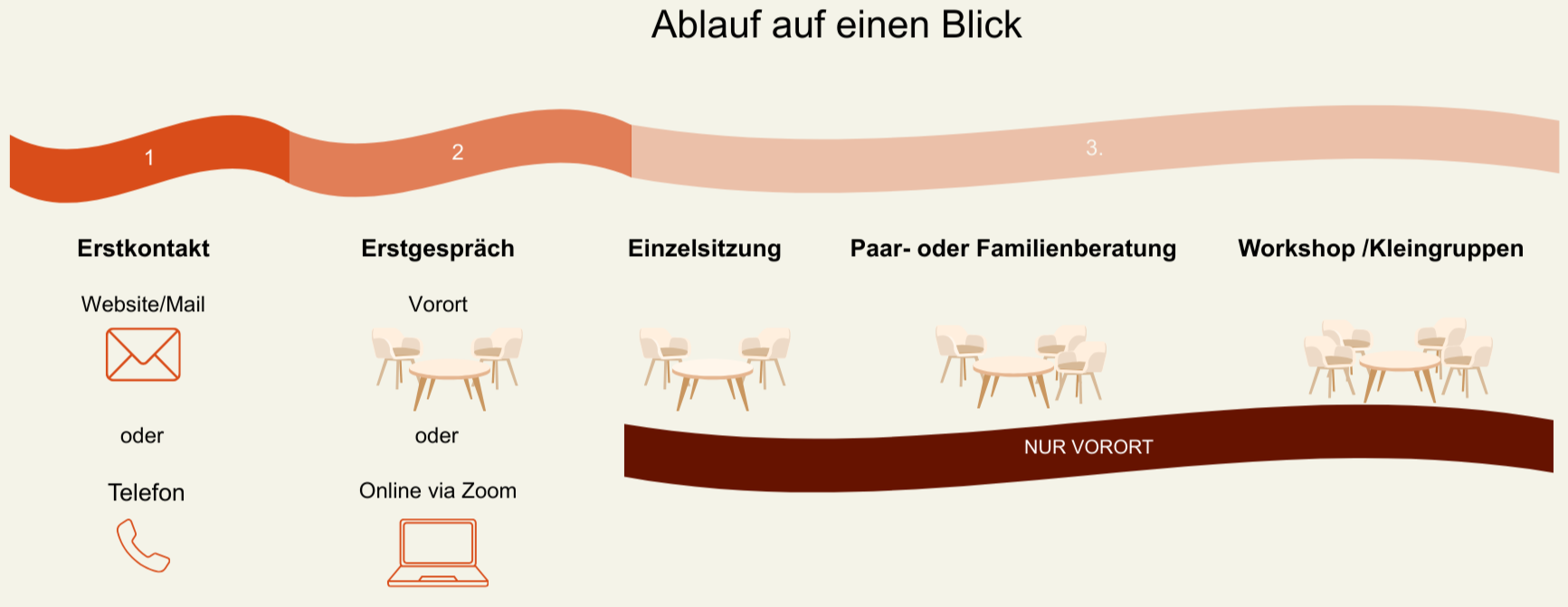 Nutzen für Sie: Sie erleben einen sicheren, klar strukturierten Rahmen, in dem Sie sich ernstgenommen fühlen, und können erste Ängste oder Beklemmungen abbauen.